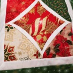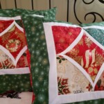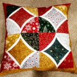 In 2017, I made two large, sofa-style pillows using premium metallic quilting cotton and the “cathedral window” quilt pattern. These pillows were gifts for two of our daughters at Christmastime. For the two larger pillows, I pieced the backs with holiday fabric with fabric leftover from other projects (see photos in the gallery). Many of the patterned fabrics had metallic accents and most of the white used is solid white batik (which I love because of how it’s woven and nearly nonexistent fraying. These are a great way to use up scraps from other larger projects and make lovely gifts.