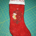 I didn’t have a pattern so I got out a stocking we’ve had for years, taped four pieces of copier paper together then traced around it to get the overall shape. I watched several Christmas stocking sewing examples on YouTube before I decided how I wanted to construct it, how the cuff would look, how the hanging loop would be attached, how it would be embroidered and quilted, etc.