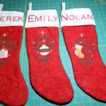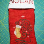 Just prior to assembling and turning the stockings I used a small swirl quilted embroidery pattern on each stocking in the heel and toe area of the stocking. I used two layers of medium-weight cut-away stabilizer for the embroidery front and then quilted the top, batting and inside layer of the front of the stocking in the heel and toe area. This made the inside of the stocking completely smooth once turned.