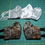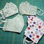 Here are photos of some of the masks I made—some for family, some for friends and mostly, donated. There were four sizes including toddler, elementary school age, teenager/ladies and extra-large sizes. I mostly used scraps I had on hand from past projects. All masks were reversible and had the soft round elastic for all the earpieces. In fact, I still have LOTS of black and white ear loop elastic on hand and have no idea what to do with it other than keep it (maybe it’ll get used in a grandkid scout project someday). I found patterns for the different sizes online and then made templates from the plastic I use when making applique templates. I then added 3M stickers to the templates so they wouldn’t slide around when marking them. My favorite fabric markers are the ultra washable Crayola markers. I stitched masks using an assembly line process to improve efficiency.