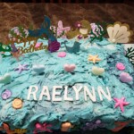 I’m so happy I got to make Raelynn’s cake for her 5th birthday party. The white confetti cake has bright blue buttercream between the layers and is covered with varying shades of swirling blue buttercream to create an ocean look. We had a very happy birthday girl and the cake was moist and yummy.