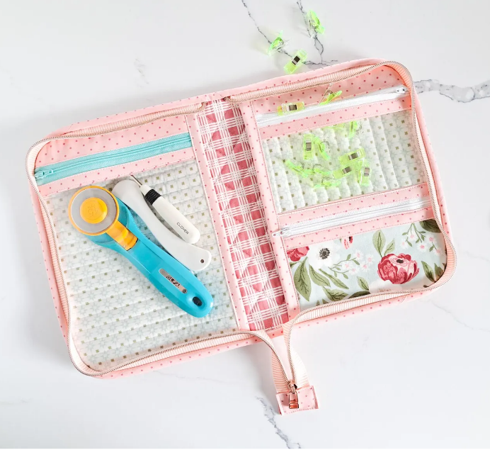 Supply case pattern. It measures 8″x10″ when closed or 16″x10″ when open.