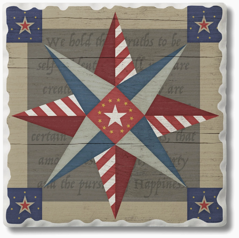 Thirstystone Barn Quilt American Guiding Patriotic Star-Square Single Coaster #02-01632