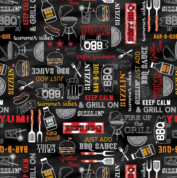 Benartex Grillin’ & Chillin’ Black Grillin’ Time Words