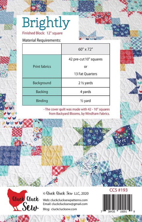 Brightly Quilt Pattern shines with sweet stars and chain blocking. Grab a layer cake in Backyard Blooms by Allison Harris for Windham Fabrics for a dazzling addition to any room in your home. Finished size: 60in x 72in