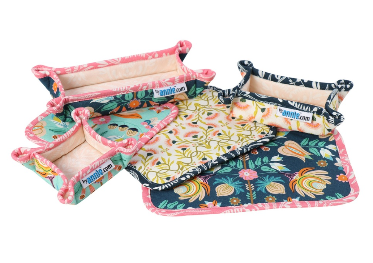 The Tidy Time pattern provides instructions for two projects, each with three sizes!MINI MATSimple mats in three sizes are perfect for holding a mug of your favorite beverage, a tasty snack, or to protect a surface. Finished Sizes:Small – 5″”H x 5″”WMedium – 5″”H x 6½””WLarge – 5″”H x 8¼””WTRINKET TRAYUse this trio of little trays to hold all sorts of small treasures — from snacks to sewing supplies! Finished Sizes:Small – 1¼””H x 2½””W x 2½””DMedium – 1¼””H x 4″”W x 2½””D Large – ¼””H x 5¾””W x 2½””DThe included Soft and Stable is enough to make three mats or three trays or a combination of the two.Our Jump Starters series of patterns are designed to spark your creativity through fast, fun, and useful projects. Beginners will enjoy learning new skills and seasoned sewists will love experiencing success as they make these quick projects.