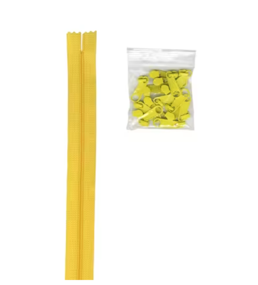 Zippers by the Yard contain 4 yards of zipper chain and 16 color-coordinated extra-large pulls. This packaging enables you to make single-slide or double-slide zippers of any length (up to 144″) with little waste, saving money and time.