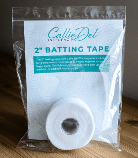 The 2” batting tape from Callie Del® is the perfect solution for joining two or more pieces of batting together on your larger quilts. This lightweight stabilizer won’t gum up your machine, or add bulk to your project.• Machine quilting – easily add a piece of batting to a project where needed.• Hand quilting – soft enough you won’t even notice when needling through.• Stabilize seams, bias edges, and straight hems.• Reinforce edges of bags, tote bag handles, and other craft projects.• Works with all batting types. Protect your work surface accordingly.Use Instructions:Note* It is always recommended to test the product on a scrap piece from your project before applying to the entire piece so you can adjust pressing times and heat as needed.1. Preheat your iron to a medium or wool setting with no steam.2. If using scraps of batting, it’s best to overlap their edges by a few inches and cut a wavy line through both pieces at the same time. Discard the scraps, and smooth the batting back together before applying batting tape.3. For best results, try to keep the newly cut edges no less the 1/2in from the edges of the tape.4. Place the rough side – or glue side – against the batting. Cover with a light pressing cloth, or Teflon sheet. Press and hold the iron in place for 8-10 seconds. Repeat by lifting the iron and placing it over the next area, slightly overlapping the first until the entire line is bonded together.5. Allow to cool before testing adhesion, and repeat pressing if necessary.6. Proceed with quilting to complete project.