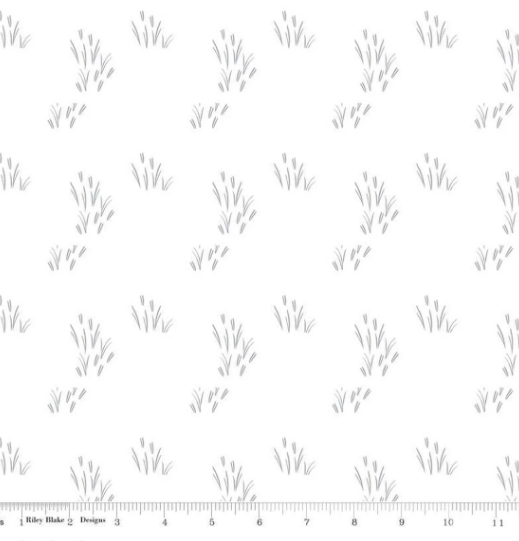 Hush Hush 3 Cattail the Difference White C14061-CATTAIL is a 100% cotton, 43/44 inches wide fabric featuring small simple outline sketches of cat tail reeds on a white background.