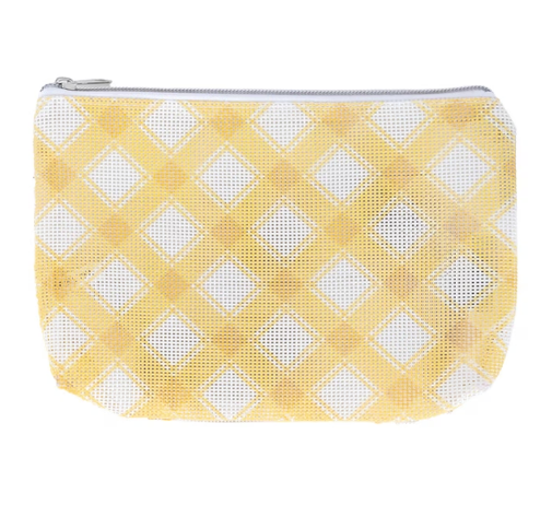 This mesh project bag is adorned with timeless plaid. Our new Mad For Plaid Project Bags are essential for storing works in progress and supplies. You can also stitch on the bag itself to add your own personal touch!Size: Open – 3.25” x 10” x 13” Flat – 11” x 16”