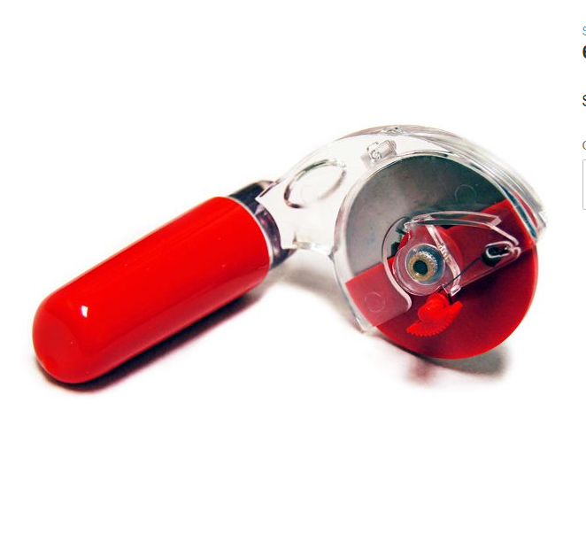 The ErgoCutter is the only truly ergonomic rotary cutter. It is held in a natural position, with your arm and palm evenly distributing the pressure. If you frequently experience pain and fatigue in your hand, arm, and shoulders after a full day of cutting, this is the tool for you! The Ergo Cutter’s research and development was guided by the advice of orthopedic surgeons, occupational therapists, and other qualified professionals to make the best, most effective tool. Besides being ergonomical, the ErgoCutter is also a fantastic rotary cutter. It cuts perfect lines and angles, and the blade guard closes with a flip of a finger. Our blades are made to last 3-5 times longer than typical rotary blades. This listing is for a 60mm right-handed ErgoCutter. 28mm and 45mm sizes and left-handed cutters are also available.