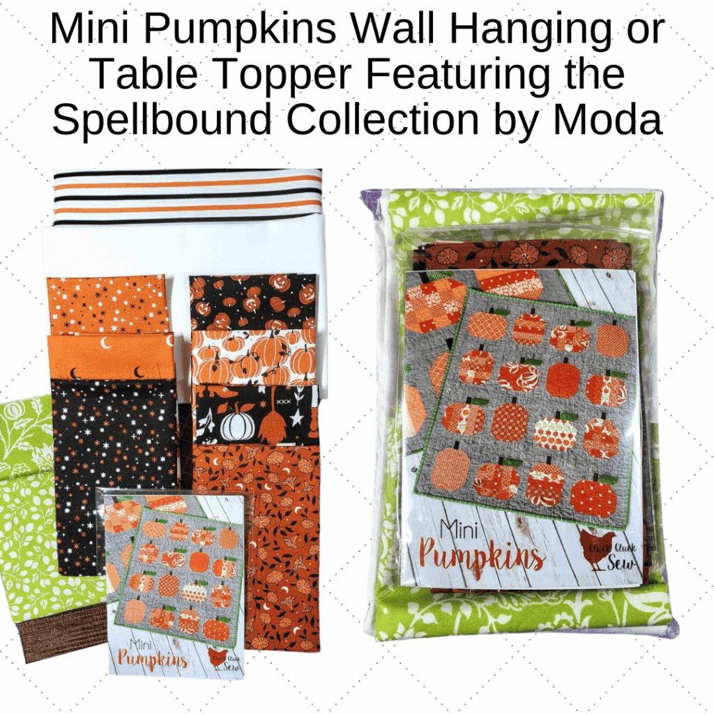 This kit measures 23.5″ x 29″, making it perfect as a table topper or wall hanging. The Spellbound collection by Moda is gorgeous! The rich, dark pumpkin color is not a typical pumpkin orange. These rusty hues are lovely. This will be quick to assemble, making it perfect for a gift or your own home.