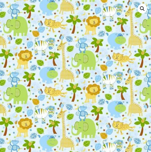 Oasis Fabrics Fun Flannels Blue Jungle Animals