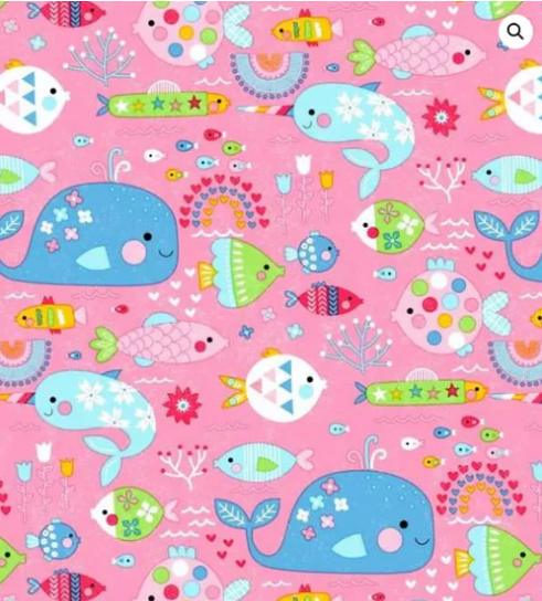 Oasis Fabrics Fun Flannels Pink Rainbow Fish