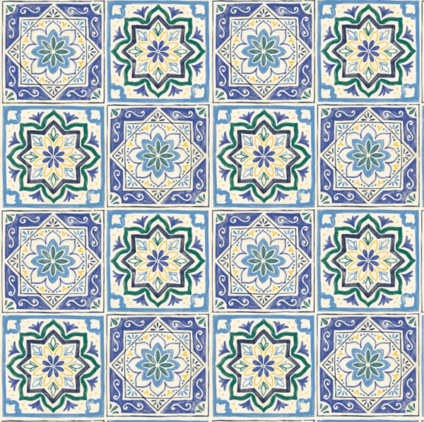 P & B Textiles Cyprus Decorative Blue Tiles #05576-B