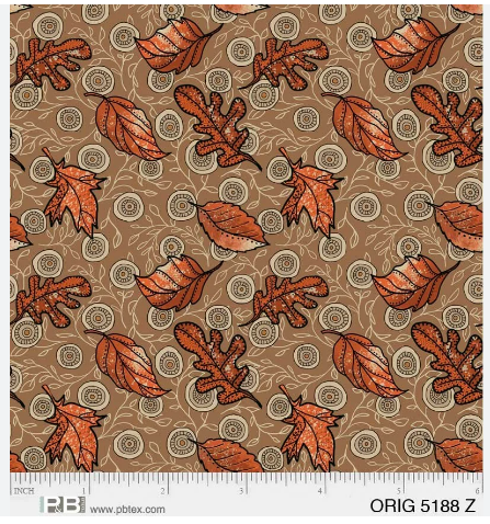 This fabric features rich browns, grays, and burnt orange. The theme resonates throughout the prints, and the warm, cozy palette begs to be used in totes, apparel, and throughout your home. The beautiful panel has unique and lovely coordinates.