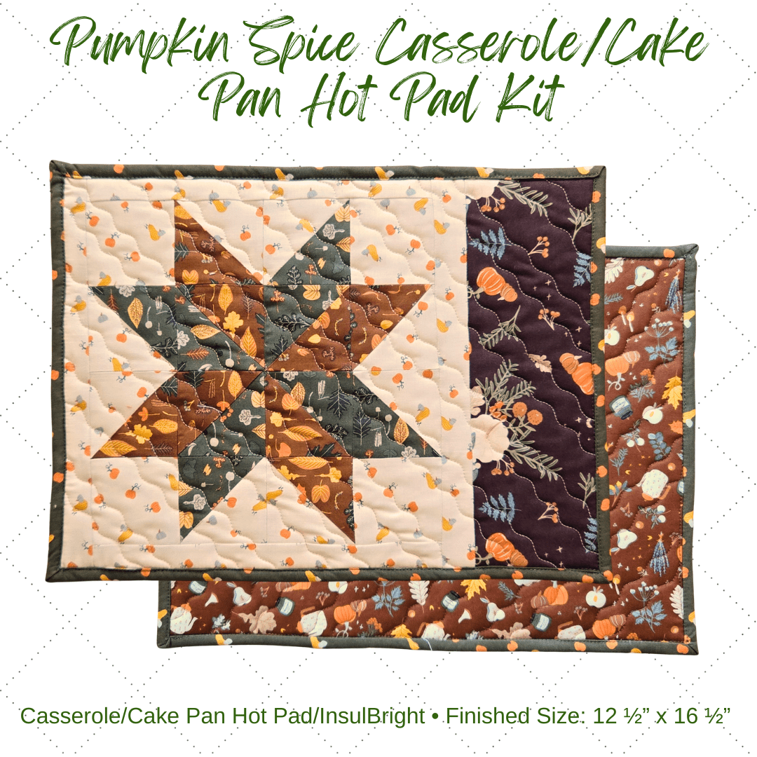 Pumpkin Spice Casserole/Cake Pan Hot Pad Kit includes a printed pattern, Insul-Bright and 100% cotton batting to create a beautiful and functional hot pad.