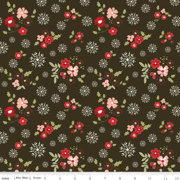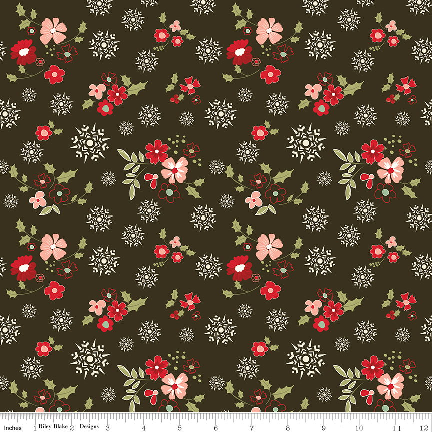 Riley Blake Glisten Winter Flowers #C16222-Mocha