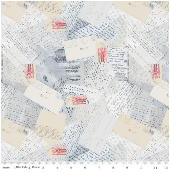 Letters From Home by Vicki Gifford for Riley Blake Designs is great for quilting, apparel and home decor. This print features a collage of letters related to military service. It’s 107″/108″ wide to accommodate most quilt backs.
