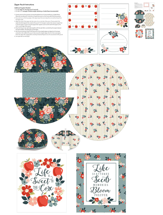 Vintage Charm by Dani Mogstad for Riley Blake Designs is great for quilting, apparel and home decor. This panel features quilt labels and the pieces and instructions to create a zipper pouch.