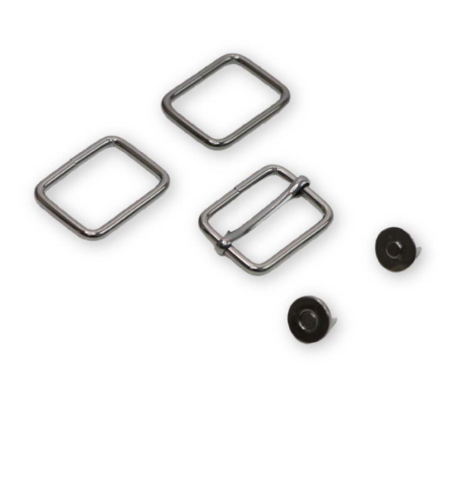 Sallie Tomato has made it easy for you by putting together a professional-looking Basic Hardware Kit in a variety of sizes! Now, all of the basic pieces of hardware to make a bag are included in one kit. You will need to check the back of your pattern for specific requirements. Included in Hardware Kit: (1) 1″ Slider Buckle, (2) 1″ Rectangle Rings, (1) 1/2″ Magnetic Snap.