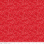 The red text fabric is the backing, and the red dot fabric is the binding. The fabrics included in the kit are shown in the gallery below: