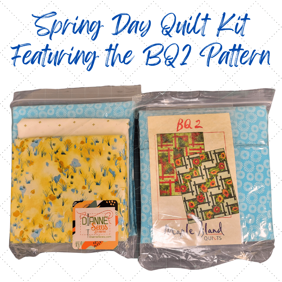 Printed Maple Island Quilts BQ2 Pattern using 13.5″ blocks shown on the bottom right of the pattern front. Fabric included for the quilt top and binding