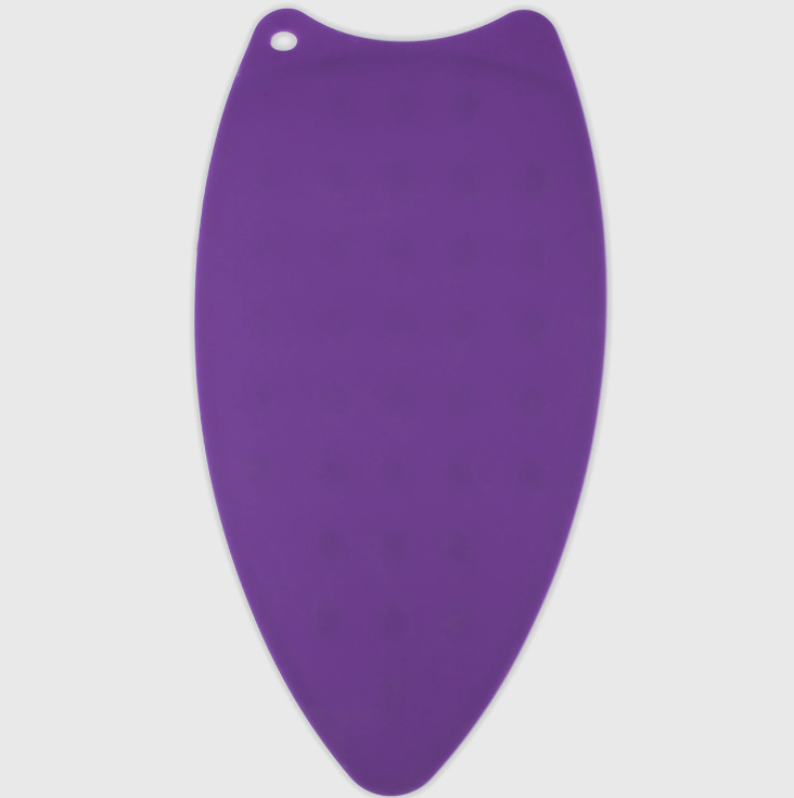 Made with silicone, The Gypsy Quilter Iron Rest resists heat. The raised round dots also help the iron to cool down faster. The iron rest is 10-1/2in x 5-3/8in.The silicone iron rest protects your ironing surface from scorching. Always place the silicon iron rest on the ironing board.