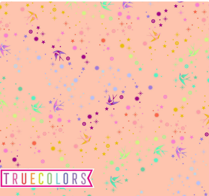 Tula Pink’s True Colors is a modern collection of designs in her core colors that make up the World of Tula Pink. These essential pieces are designed to highlight and enhance projects and quilts done in other core fabric collections. Fairy Dust, Mineral, Wildflower and Hexy are new prints introduced with vibrant new colorways to stand on their own as a vibrant expression of color and prints!